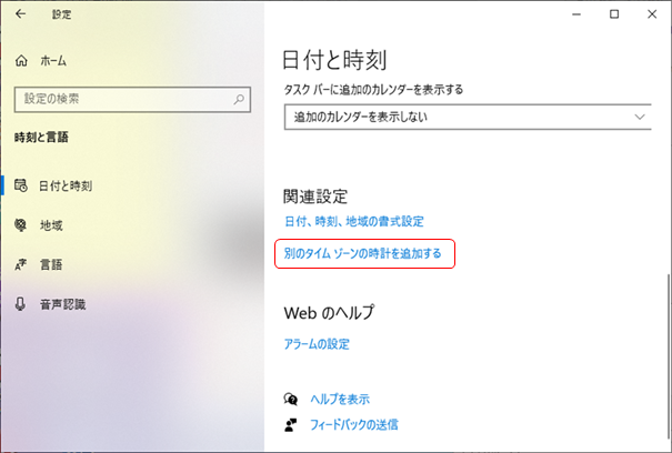 ② その中の「別のタイムゾーンの時計を追加する」をクリックします。