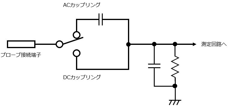 DCカップリング:プローブの信号をオシロスコープの測定回路に直結して直流成分も含めて計測できるようにします。