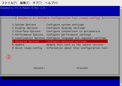 ② メニューから”6. Advanced Options“を選び、リターンを押します。