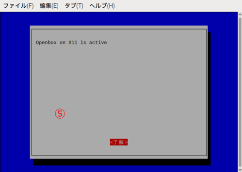 ⑤ “Openbox on X11 is active”と出てきますので、リターンを押します。