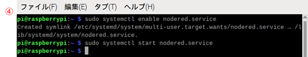 ⑥ 以下のコマンドを打って、電源投入後自動で実行されるように設定します。