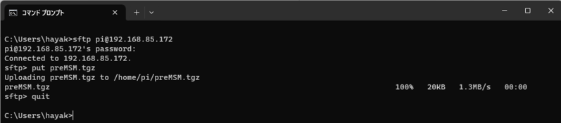 ① sftpを使って、PDHにpreMSM.tgzを送る。もしくは、USBメモリでコピーする。