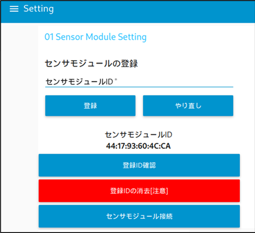 ② タブをSettingに変更し、センサーモジュールの登録にR-MSMのIDを入力して、接続を行います。