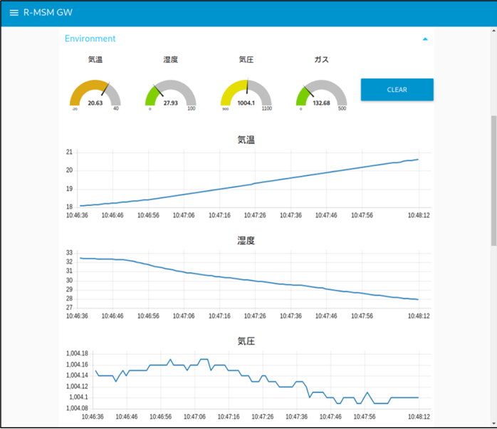 ③ 接続がうまく行くと、ダッシュボードのタブ R-MSM GWの画面にグラフが表示されます。