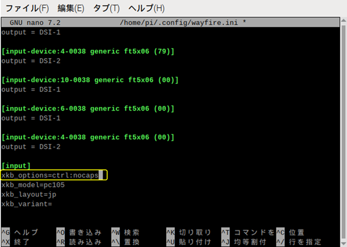 xkb_options= ⇒ xkb_options=ctrl:nocapsに修正