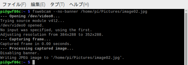 fswebcam --no-banner /home/pi/Pictures/image02.jpg