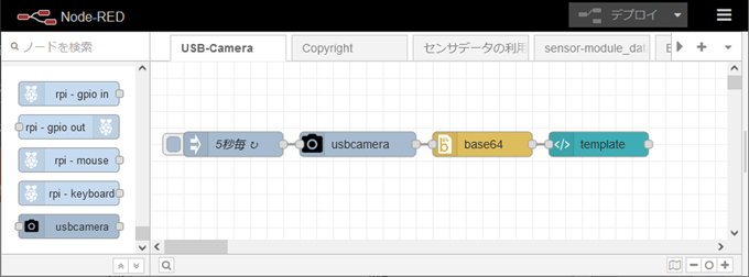 5-1. 必要ノードの追加:usbcameraノード、base64ノード
