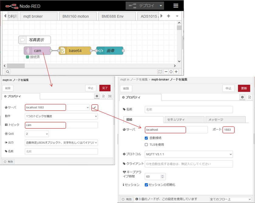 2)Node-REDでの撮影と表示