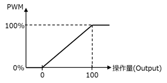 制御回路のON/OFFは、PWM(Pulse Wave Modulation)で行います。PIDの操作量とPWMのON/OFFの比率の関係を図5に示します。