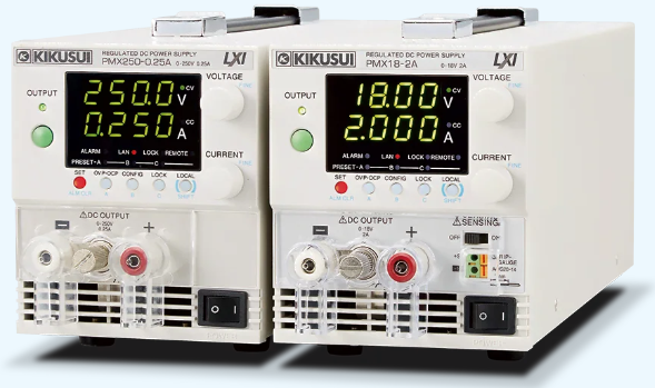 題材として、LANを経由して各種のコントロールが可能な直流安定化電源装置、菊水電子製PMX-Aを使用します。まずこの機材の仕様を確認します。