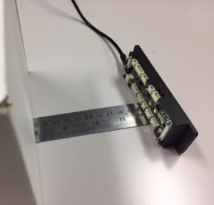 事前準備として、近接センサの前に物を置いた場合に、センサの出力と距離の関係を評価した。