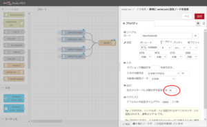 Node-REDの記述例を図6、図7に示します。特に、図7のシリアル出力の記述は重要です。