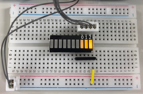 pwm0のオン比率=10%、pwm1のオン比率=30%、pwm2のオン比率=100%にした際のLEDの光量を次に示します。