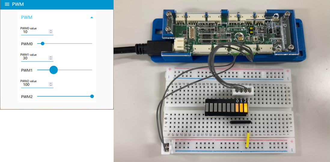 設定値は、pwm0,1,2_val=0~1023(pwm0:J11の1pin出力、pwm1:J11の2pin出力、pwm2:J11の3pin出力)です。