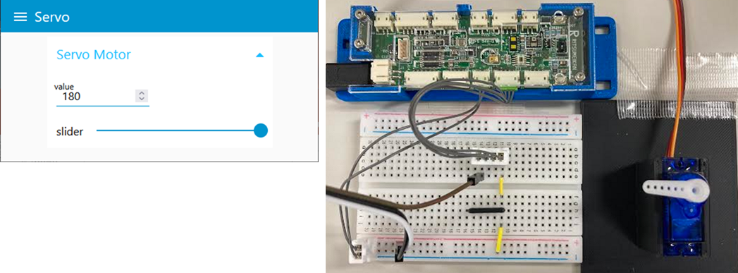 ダッシュボードのスライダを動かすとSG90のモータの軸が0°~180°の間で動きます。
