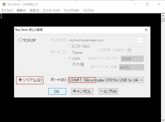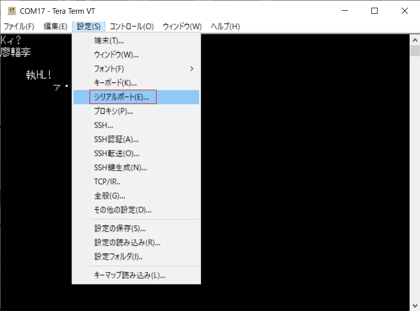 上部のメニューから「設定」を選び、その中から「シリアルポート」を選びます。