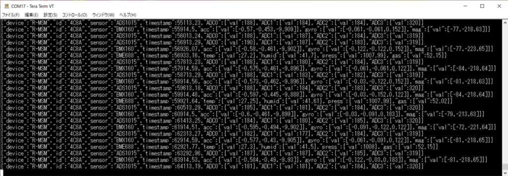 設定を終えたら、OKボタンを押してください。下の図のように、テキストデータが流れ始めたら、接続はOKです。