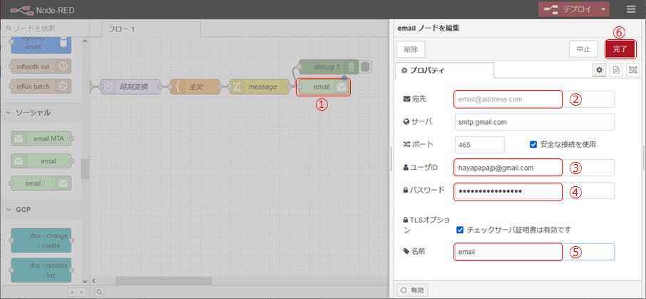 ここでは、emailノードを使ってgmailを送信する方法を説明したいと思います。