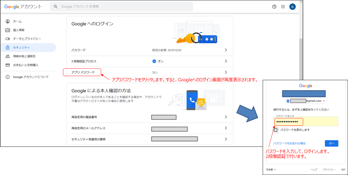 5-2.“アプリパスワード”をクリックして、再ログイン