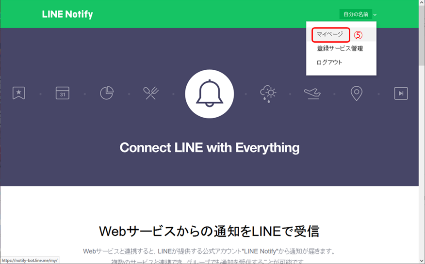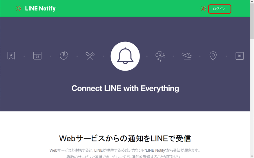 ① Line Notifyのページにアクセスします。