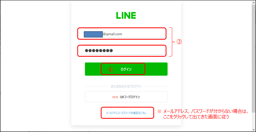 ③ メールアドレスとパスワードを入力します。