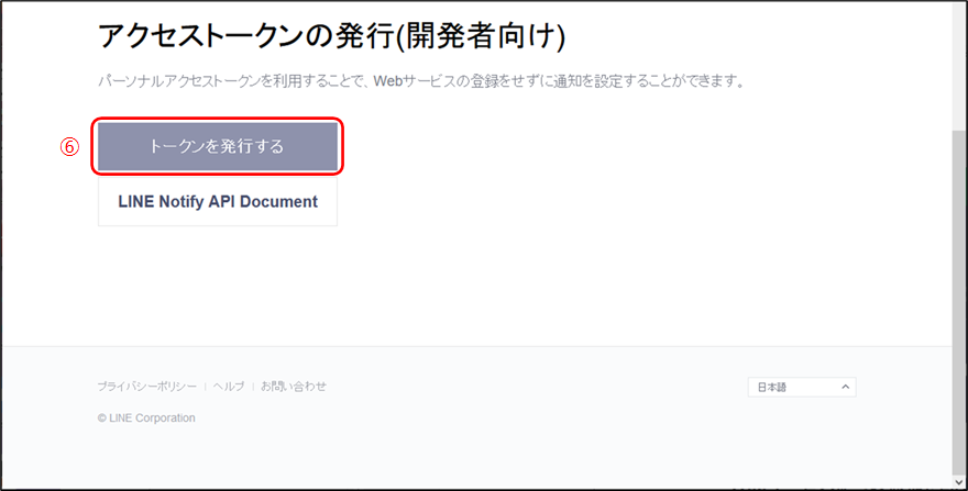⑥ アクセストークンの発行のところで、「トークンを発行する」をクリックします。