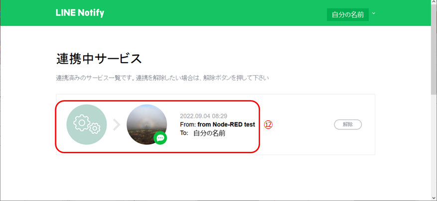 ② 送信先にLine Notifyが送られてきたか確認してください。