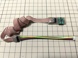 ロボットの可動部を越えるために伸縮配線を使って、EXT I2Cポートに加速度センサを取り付けました。オンボードセンサとアドレスが重ならないように、増設するセンサはアドレスを必ず切り替えることが必須です。
