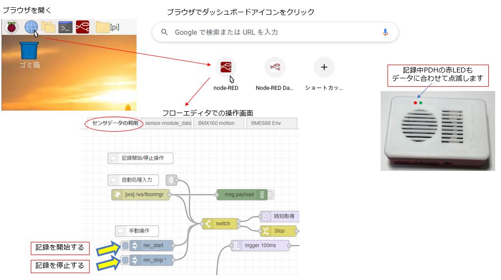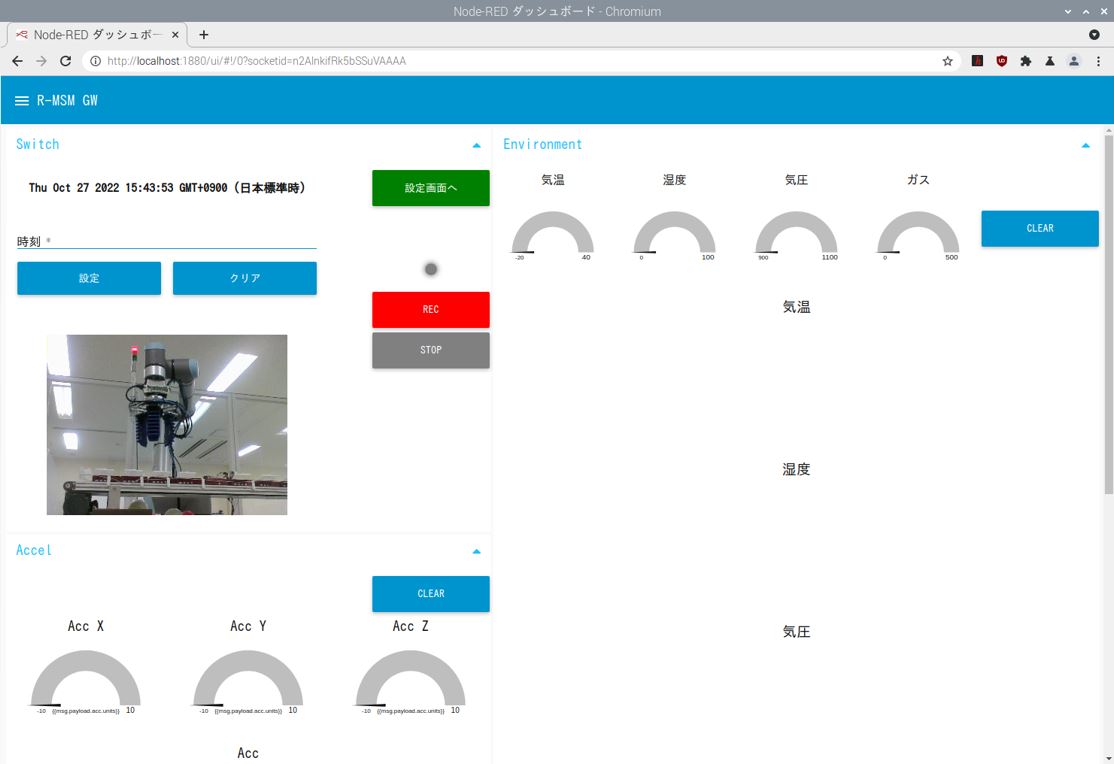 センサデータを表示するため、PDHのブラウザを開き、Node-REDのダッシュボード画面を開きます。