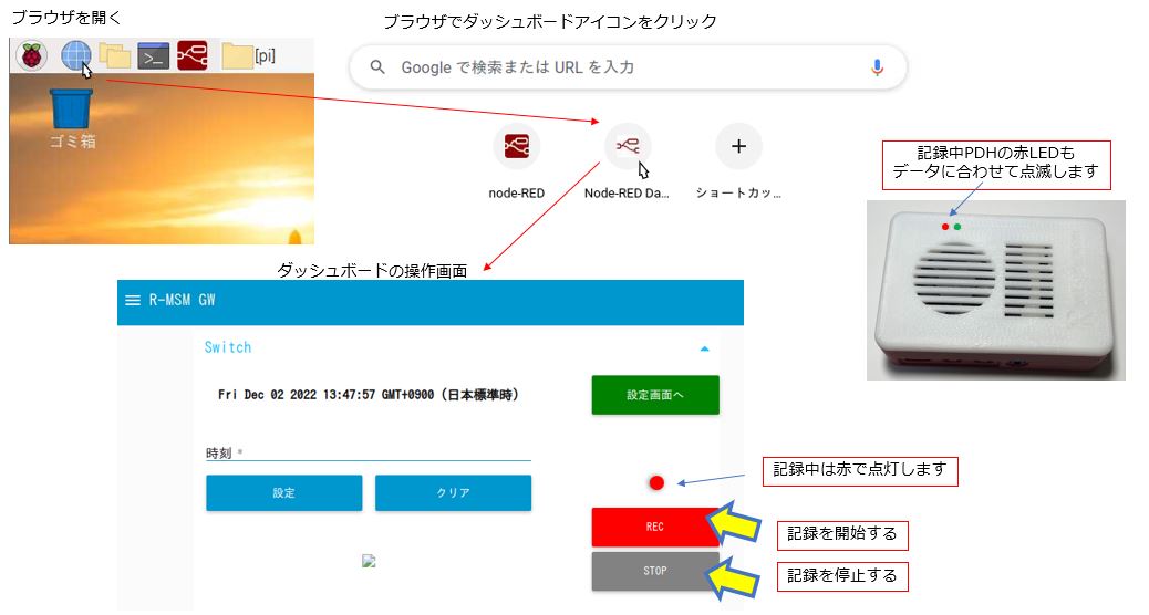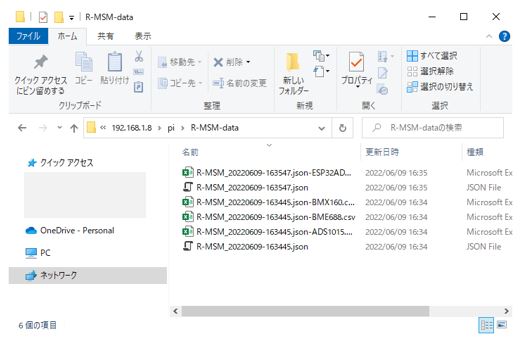 上記の操作でPDH内に記録したデータは、PDHの/home/pi/Documents/R-MSM-data に保存されています。