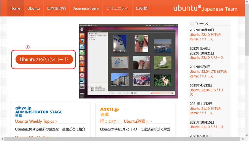 Ubuntuの最新LTS版をダウンロードするために、Ubuntu Japanese TeamのHPに移動します。