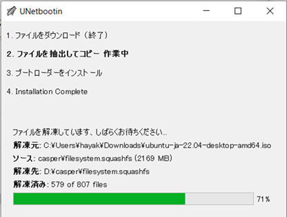 ② USBドライブ用のUSBをPCに挿し、ダウンロードした 「unetbootin-windows-702.exe」をクリックして実行します。