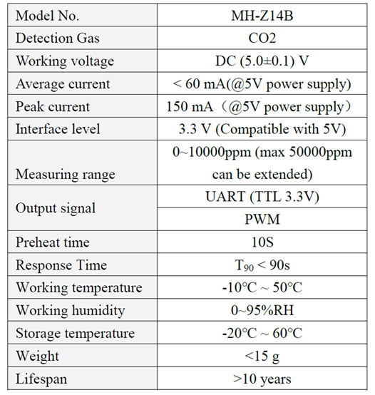 2-1. 二酸化炭素センサMH-Z14Bの仕様