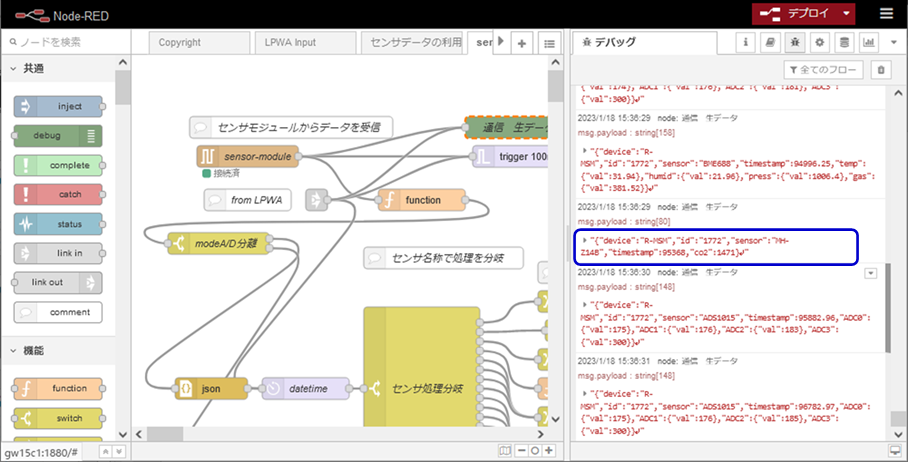 MH-Z14BのデータがR-MSM経由でPDHに送られてくることを確認します。