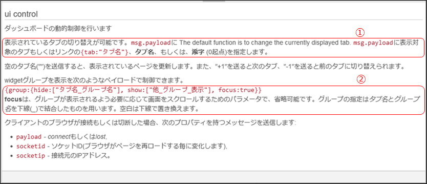 一つ目が、msg.payloadで送られてきたタブ名にタブを切り替えること。