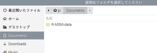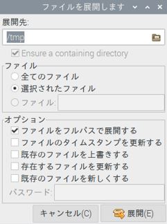 3.「アクション」メニューから「展開」を選択、展開先に/home/pi/Documents を指定