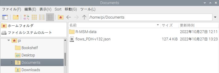 /home/pi/Documentsに更新用ファイルflows_PDH-v132.jsonがある場合、ターミナルを開いてhome/pi/から次のコマンドを実行します。