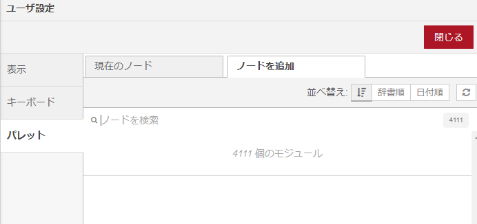 Node-REDをインストールしたコンピュータをインターネットに接続した状態でノードを追加/更新してください。