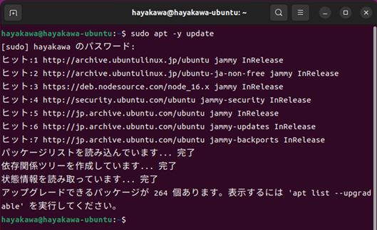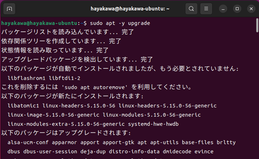 apt updateで更新リストを作成し、apt upgradeで更新を行います。