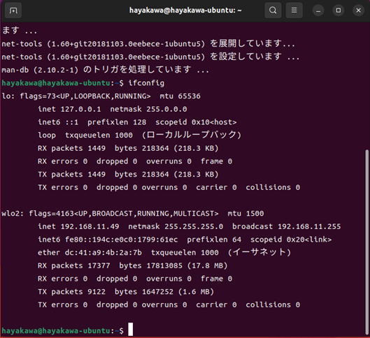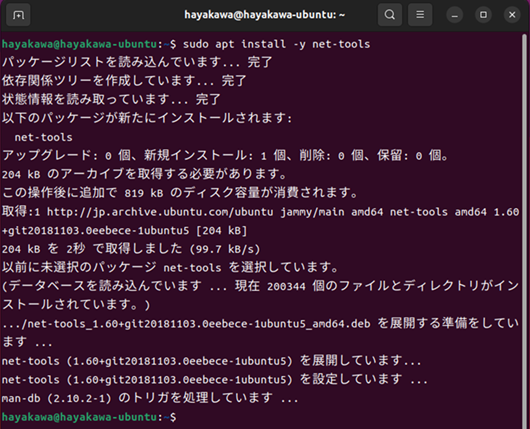 - 2-3. net-toolsのインストール:ifconfigを使用可能にします。