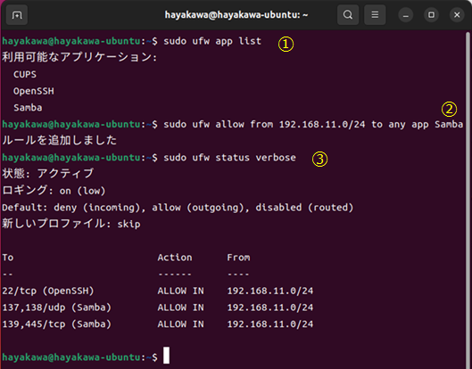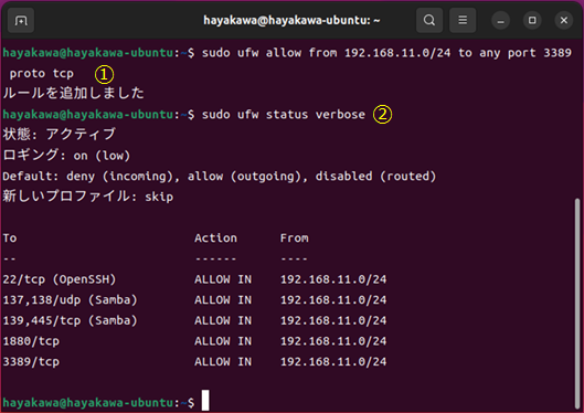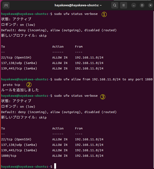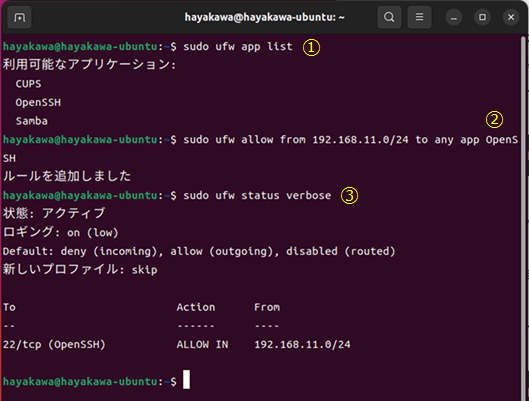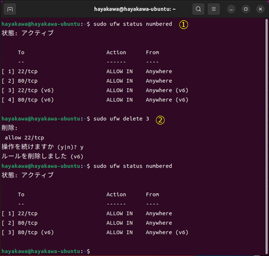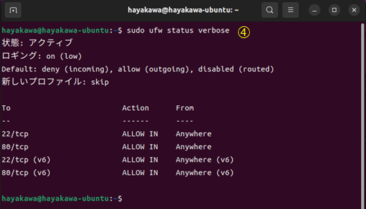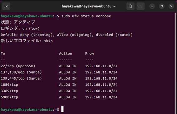 - 3-1. ファイアウォールの設定:ufw(Uncomplicated Firewall)