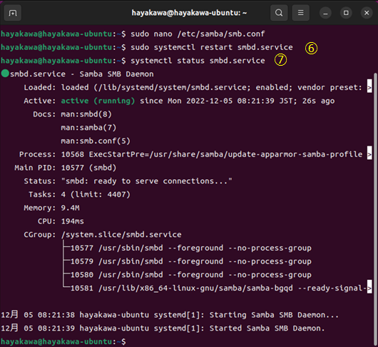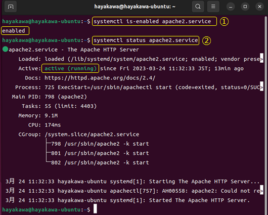 active(running)となっており、また、下部のログにもエラー等が無いことから問題なく起動しています。