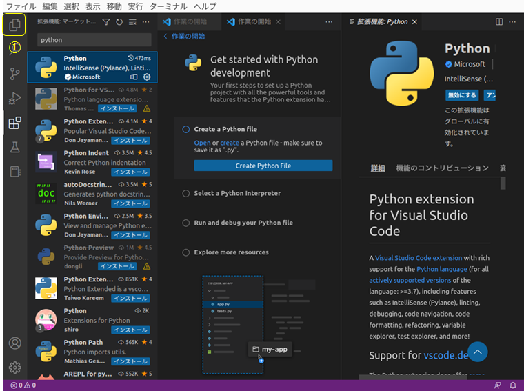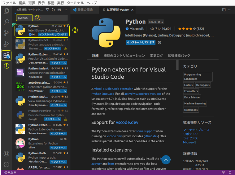 ③ Microsoftのpythonの「インストール」ボタンをクリックします。