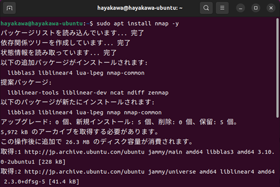 意図せぬポートが開いていないか、意図せぬコンピュータがWiFiルータ上にいないかなどセキュリティの観点からも便利なツールです。ここでは、Ubuntuへのインストールと簡単な使用方法を説明します。詳細な使用方法は、「nmapの実用的コマンド10選」などを参考にしてください。