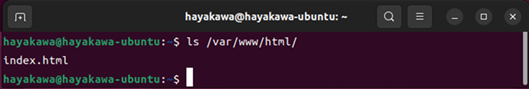 このページは、初めにも書きましたが、”/var/www/html/index.html”です。