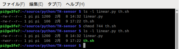 そして、実行権限を与えるために、以下のコマンドを実行します。