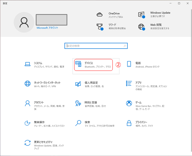 ② 設定画面が開きますので、デバイスを選びます。