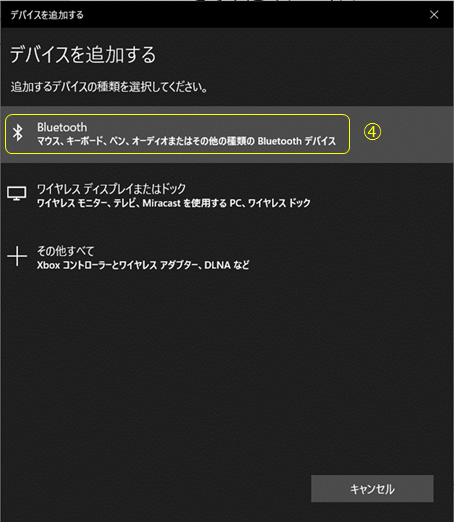 ④ Bluetoothのデバイスをスキャンするために、“Bluetooth”をクリックします。