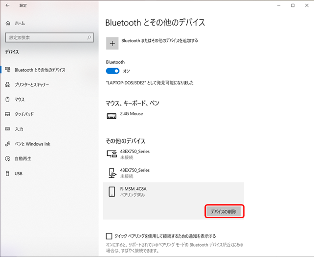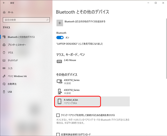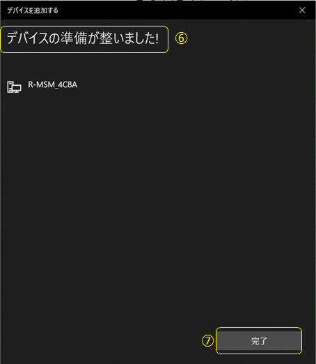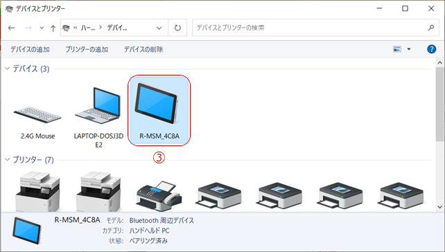 ⑧ その他のデバイスに、“R-MSM_4C8A”が「ペアリング済み」で追加されています。