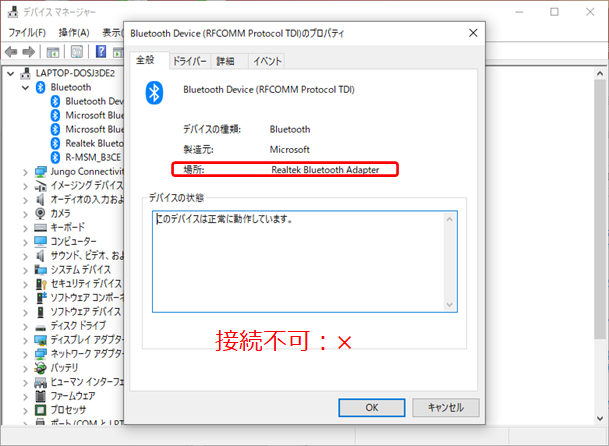 ・ Realtek Bluetooth Adapter:接続できず